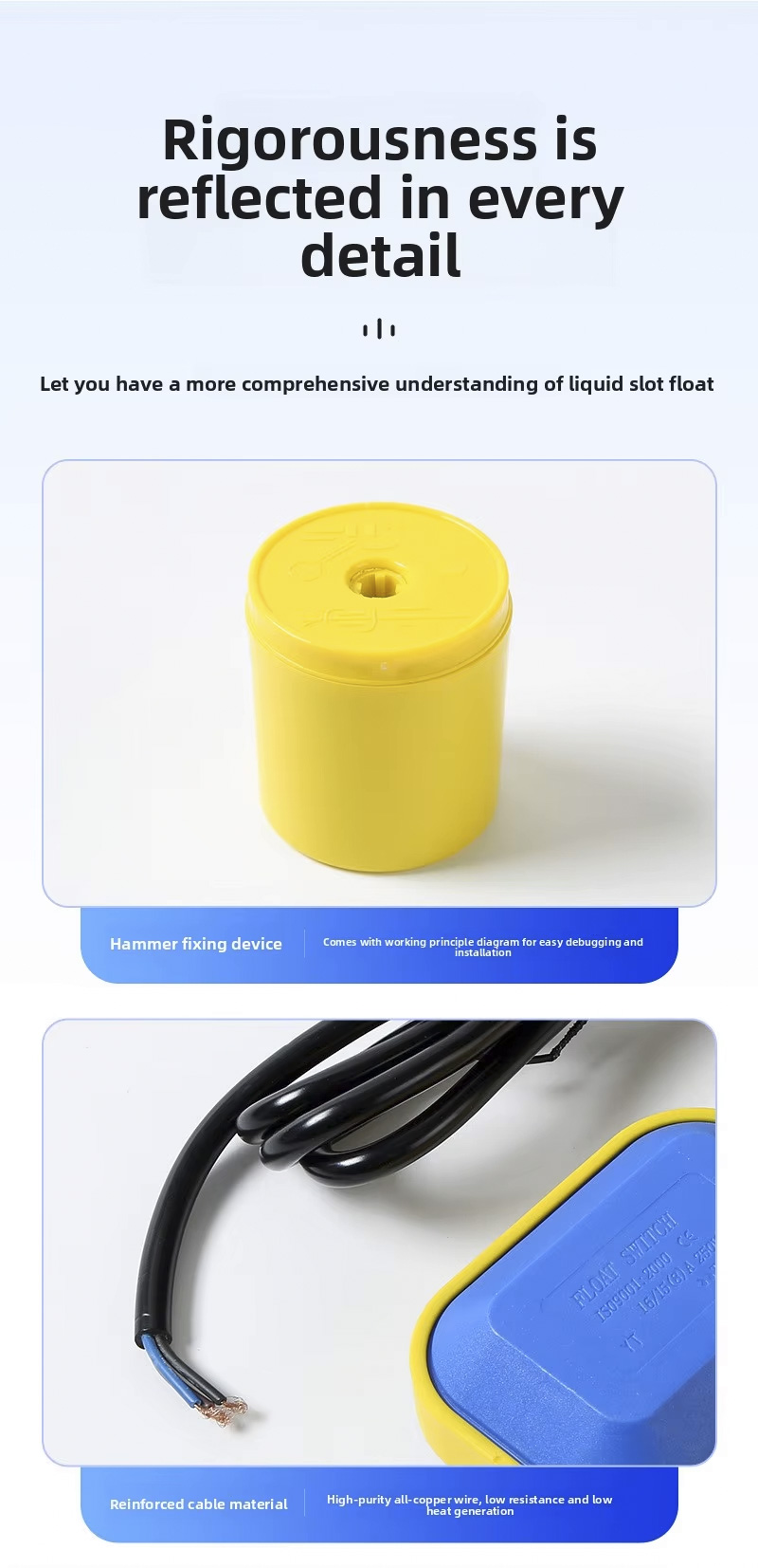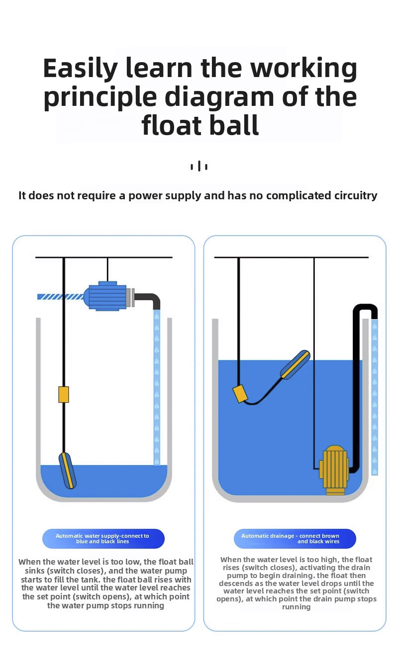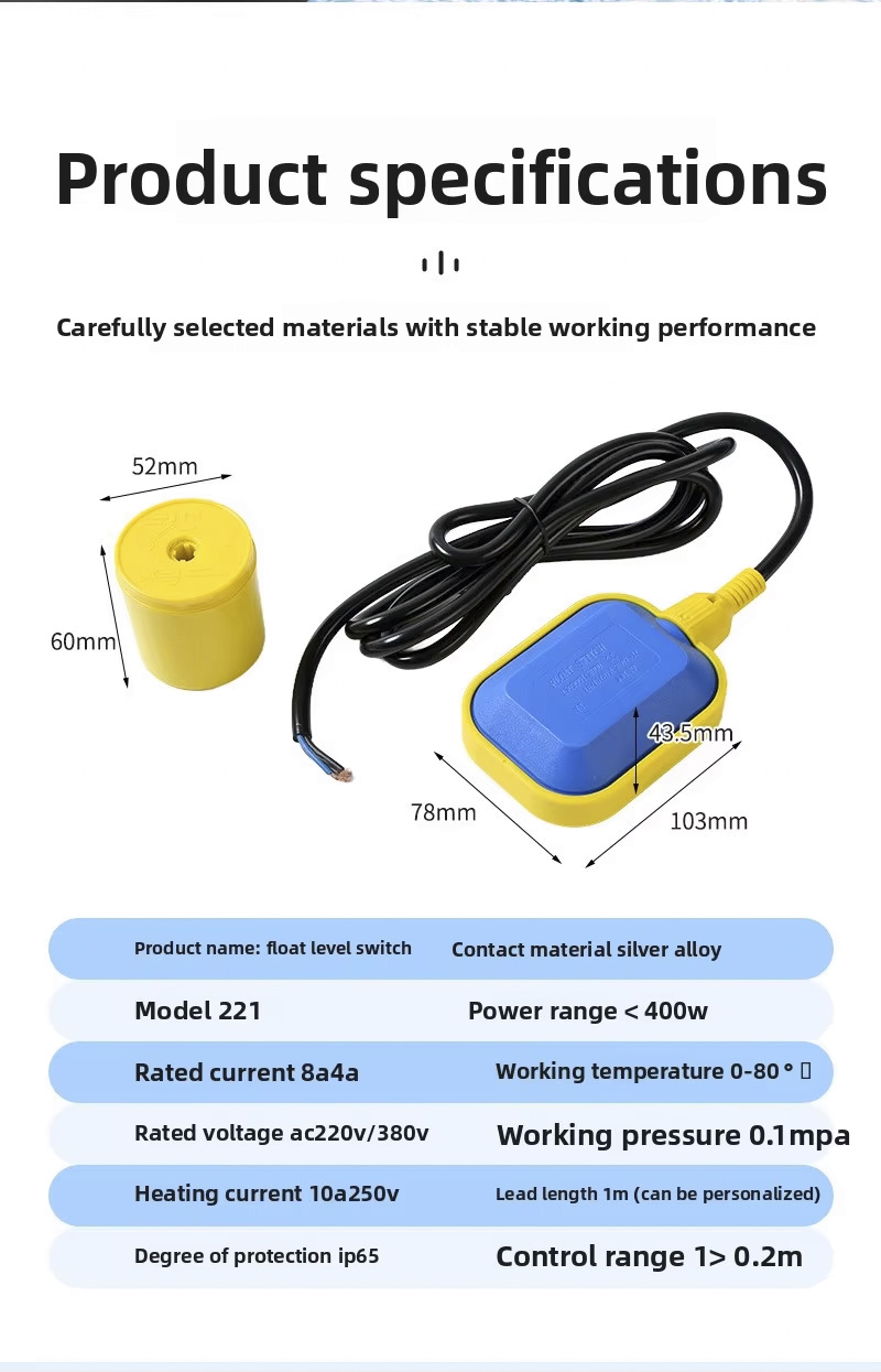 Bu şamandıra anahtarı, 2m, 3m, 5m, 10m, IP68 koruma sınıfına sahip geniş bir dairesel tasarıma sahiptir ve 0°C ila 80°C arasındaki sıcaklıklarda çalışır. 110V ila 220V arasında geniş bir voltaj aralığını destekler ve ±0,5Mpa'lık sağlam bir çalışma basıncına sahiptir. Ürün, lazer gravür, kabartmalı logolar veya OEM/ODM hizmetleri ile özelleştirilebilir ve çeşitli uygulamalar için uyarlanabilirlik sağlar.